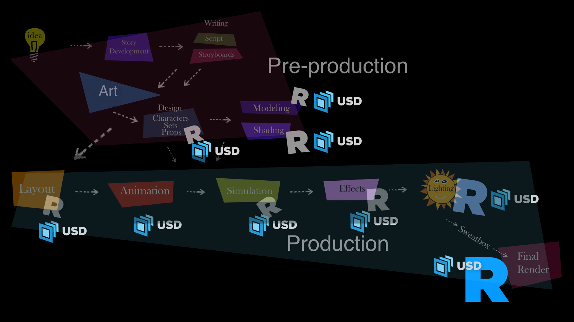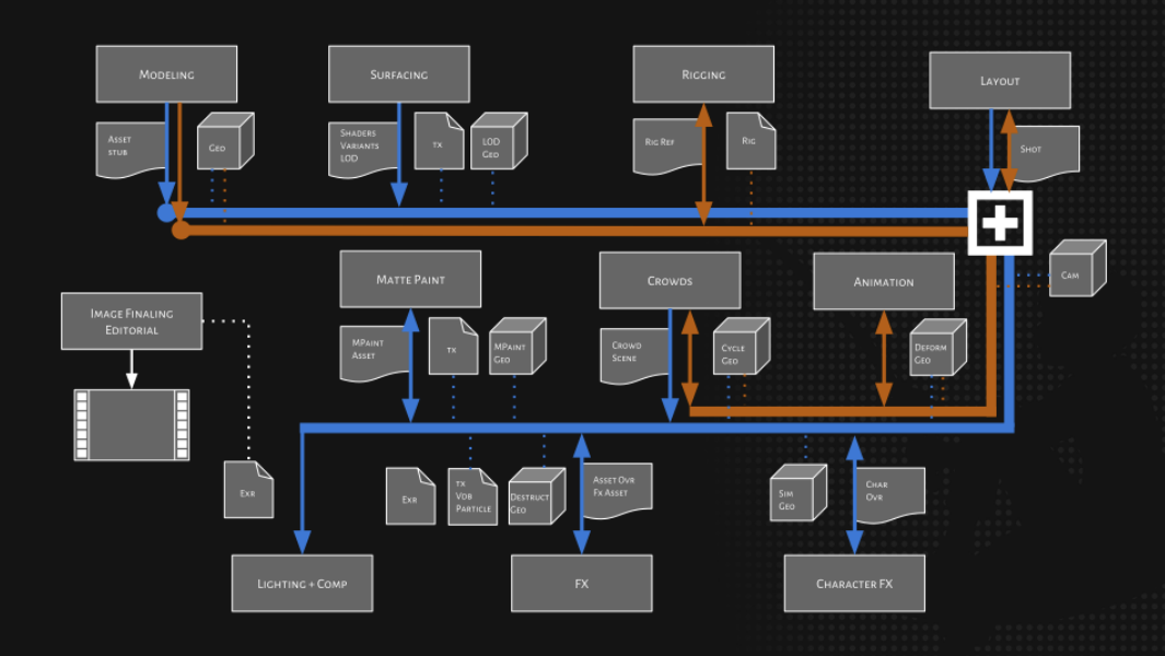 Studios have also invented their own ways of using USD in production; some are 100% USD based, some are 50/50, some don’t use USD at all.
