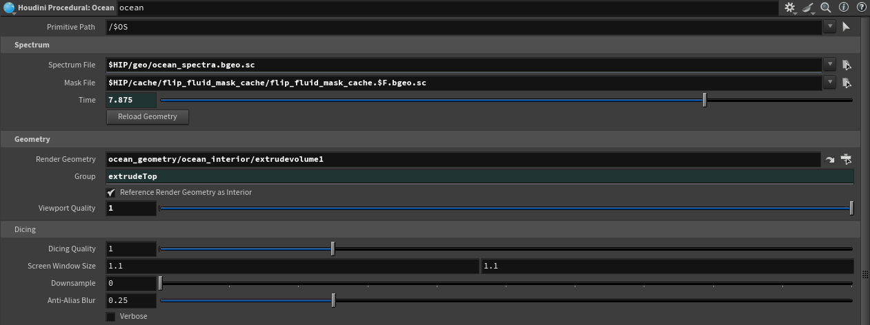 I found that oceans in USD are best approached with using procedurals. The Houdini Ocean Procedural takes in a thin surface mesh and an ocean spectrum and then dices and displaces it at render time. It’s much faster (and smaller in cache size) than trying to dice your mesh for each frame.